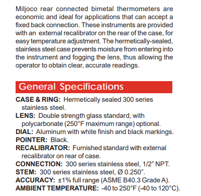 MILJOCO 双金属温度计B3099系列