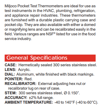 MILJOCO 蒸汽驱动式指针温度计U型夹安装系列